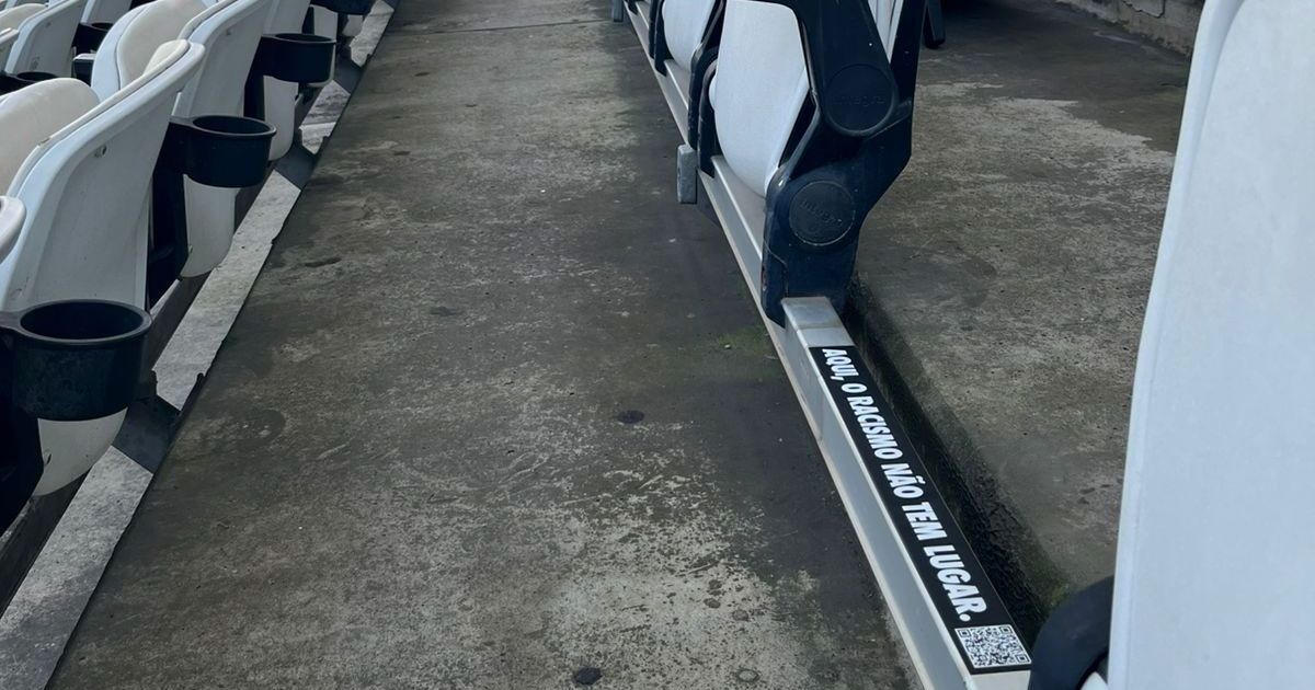 No local da cadeira, o clube instalou a mensagem: “Aqui, o racismo não tem lugar. E nunca terá”. O espaço também conta com um QR code que direciona torcedores a orientações sobre como identificar, registrar e denunciar episódios de racismo.