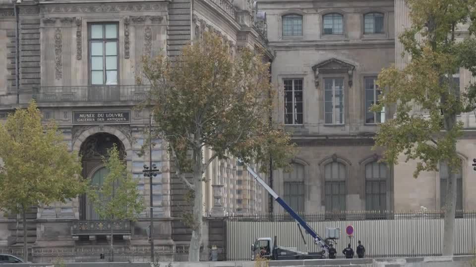 A polícia inspecionou um guindaste do lado de fora do Louvre, em Paris, que se acredita ter sido usado no assalto ao museu na manhã de domingo (19).
