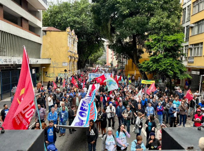 Em sua fala durante o ato, o deputado federal Glauber Braga (Psol) fez duras críticas a Castro e afirmou que o Rio de Janeiro tem o pior governador do Brasil “que tenta agora entregar tudo aquilo que é patrimônio do estado”.