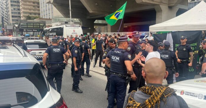 Uma confusão foi registrada na tarde deste domingo (12) na Avenida Paulista, em frente à Fiesp, após uma pequena manifestação de apoiadores do ex-presidente Jair Bolsonaro que pediam anistia.