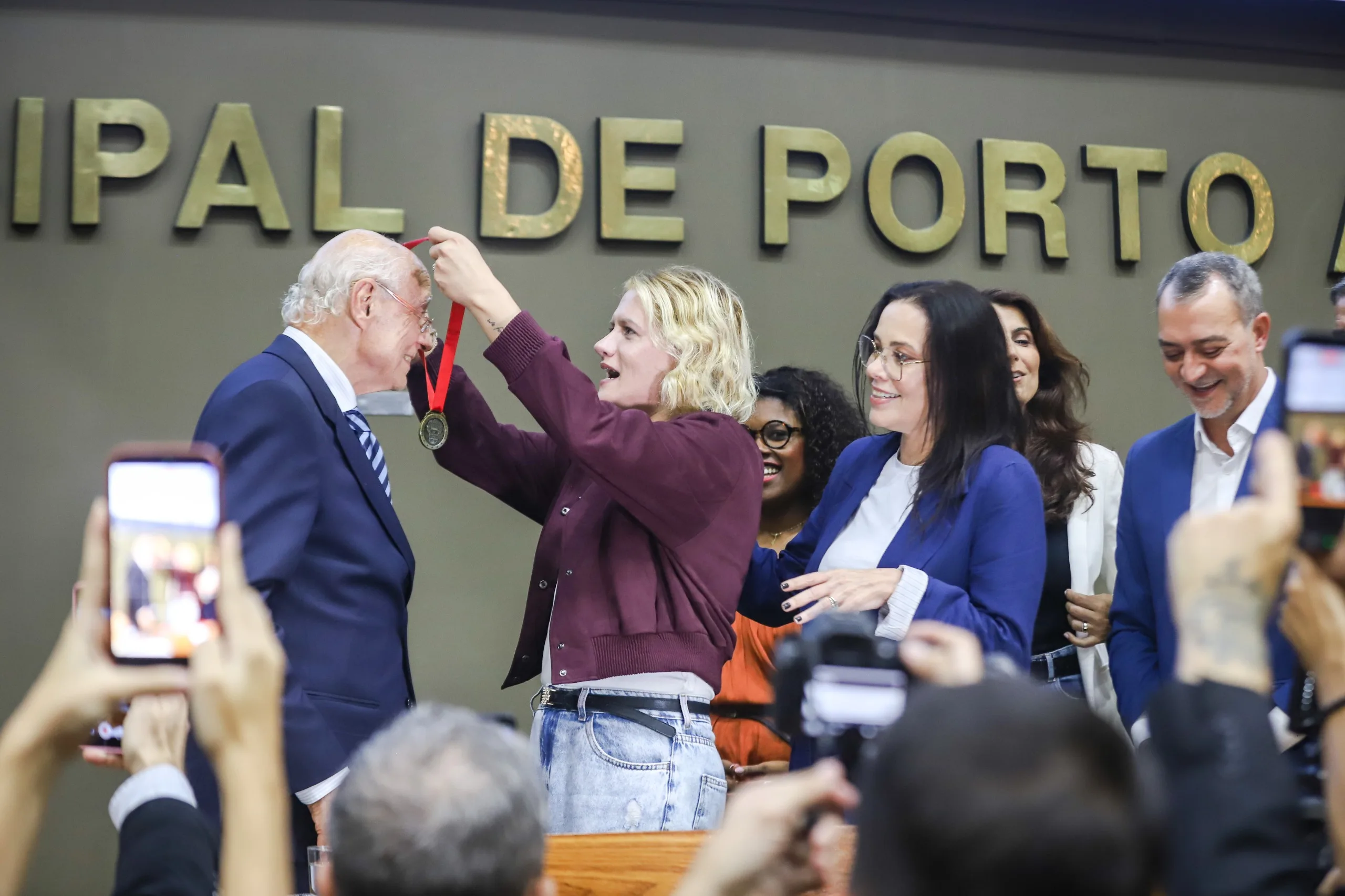 A Câmara Municipal de Porto Alegre concedeu, na noite desta quinta-feira (16), o título de cidadão da capital ao economista e deputado estadual Eduardo Suplicy, em uma sessão solene realizada no Plenário Otávio Rocha. A homenagem foi proposta pela vereadora Natasha Ferreira (PT), e reuniu lideranças políticas, parlamentares e apoiadores.