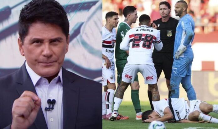 O jornalista fez duras críticas ao árbitro da partida, Ramon Abatti Abel. Para o âncora, o Campeonato Brasileiro está “manchado” e já tem um campeão definido.