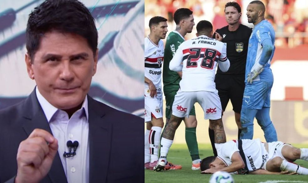 “Ramon Abatti, de Santa Catarina. Tem que falar… Ramon Abatti Abel. Olha que coincidência… Tem o sobrenome igual do técnico do Palmeiras. Ele esteve o ano passado apitando Fortaleza e Palmeiras aqui em São Paulo, estava 1 a 0 para o Fortaleza, ele deu dois pênaltis para o Palmeiras, discutíveis, de interpretação, e ele foi afastado pela CBF em 2024, exatamente pelos erros cometidos no jogo com o Palmeiras. Esse mesmo árbitro, Ramon Abatti Abel apitou o jogo entre Flamengo e Cruzeiro com o melhor resultado para o Palmeiras, que seria um empate entre os dois. O que que aconteceu? Ele travou o jogo, o jogo ficou empatado, ele expulsou um jogador do Flamengo, e como se fosse um prêmio, ele veio apitar justamente o jogo do adversário de Flamengo e Cruzeiro. Aliás, torcedores de Flamengo e Cruzeiro, esqueçam o campeonato, já tem dono, pode encerrar agora. Aliás, esse campeonato está mais manchado do que todos que eu já vi até hoje do Brasileirão. Esta é a minha opinião”, disse Cesar Filho, que estendeu as críticas à CBF e à diretoria do São Paulo.
