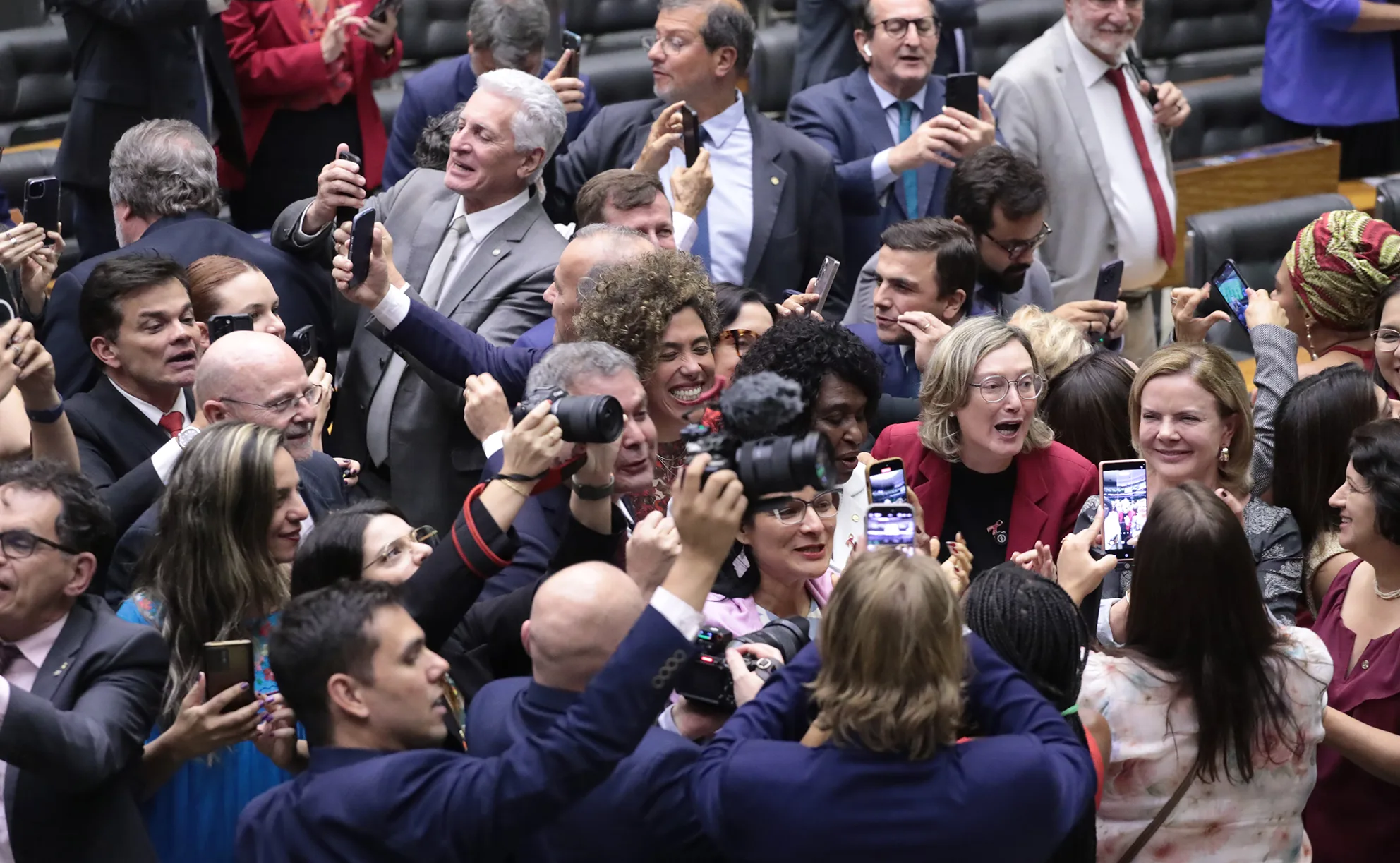 Presente à votação, a ministra da Secretaria de Relações Institucionais, Gleisi Hoffmann comemorou o resultado.Ela trabalhou para minar a resistência da extrema-direita e emendas que poderiam inviabilizar a proposta, como a não taxação de quem ganha acima de R$ 50 mil em dividendos e lucros.