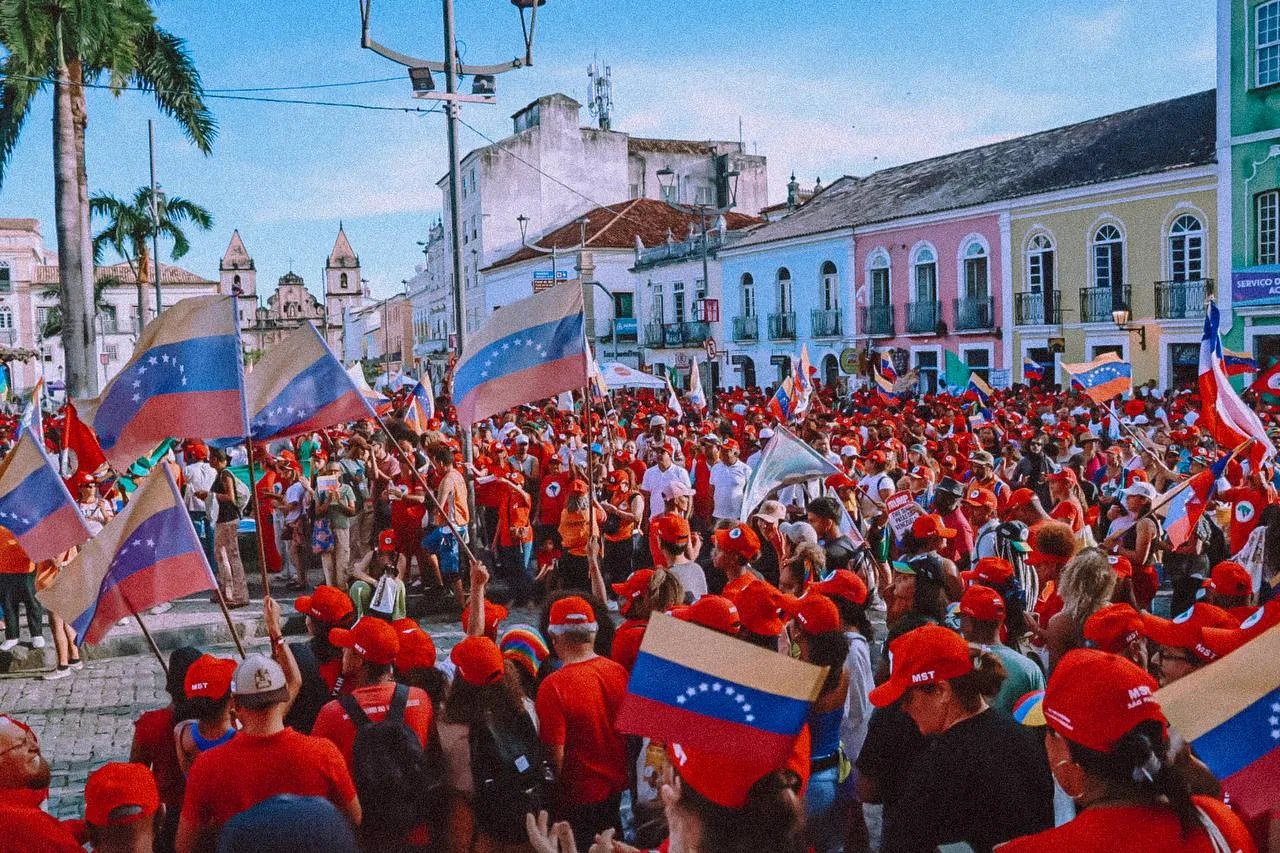 Participantes do 14º Encontro Nacional do Movimento dos Trabalhadores Rurais Sem Terra (MST) se mobilizaram, nesta quinta-feira (22), para um ato em solidariedade ao povo da Venezuela e contra o sequestro do presidente Nicolás Maduro pelo governo de Donald Trump no dia 3 de janeiro. Os militantes, que desde o início da semana participam do evento em Salvador (BA), se reuniram na Praça Terreiro de Jesus, junto ao Pelourinho, um dos símbolos da capital baiana.