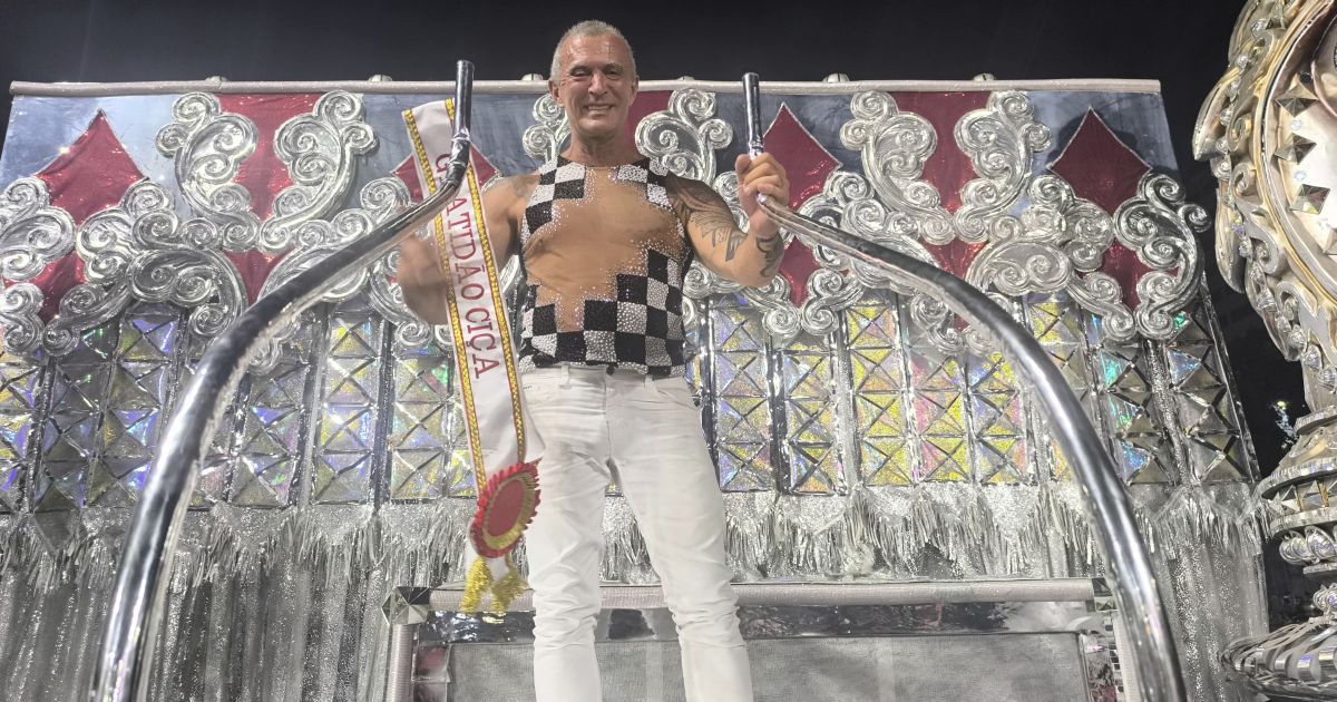 Paulo veio no alto do tripé “Tabuleiro de Xadrez”, elemento que faz alusão ao icônico carro alegórico do desfile de 2007, quando assinou o enredo “A Viradouro Vira o Jogo”, marcando época na trajetória da escola de Niterói.