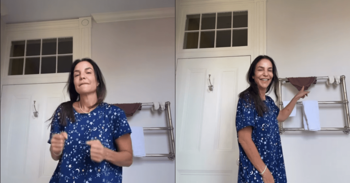 Ivete Sangalo53, se divertiu ao começar a manhã deste sábado (25) escutando músicas da turnê “Clareou”, mas deixou escapar um pequeno detalhe no fundo do vídeo.