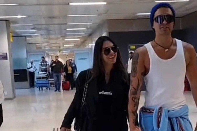 Essa é a primeira exposição pública do sertanejo com a influenciadora após reatarem o namoro. O casal estava no corredor do aeroporto quando os paparazzi encontraram os dois, que sem tentar esconder sorriram para as câmeras.