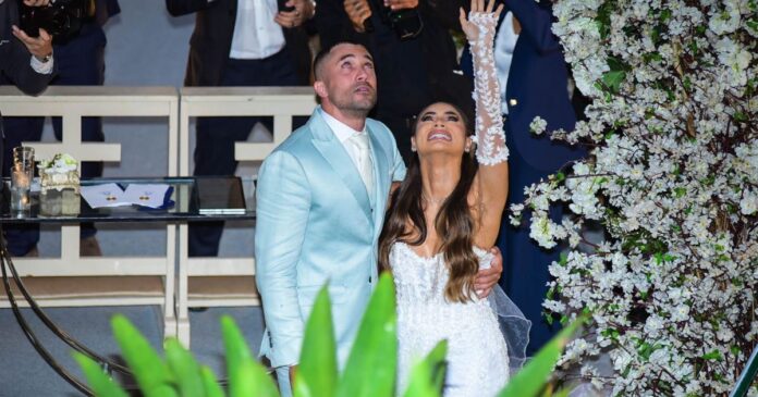 O casal que estava noivo desde o fim de 20204, escolheu celebrar seu casamento na mansão Casa do Alto, no Alto da Boa Vista, zona norte da capital carioca. O jardim do espaço ganhou uma capela, com um grande lustre de cristal e um chão de espelhos. Enquanto o espaço interno foi escolhido para receber a festa, com pista de dança e uma cascata de água atrás do bar. Veja mais detalhes do espaço:
