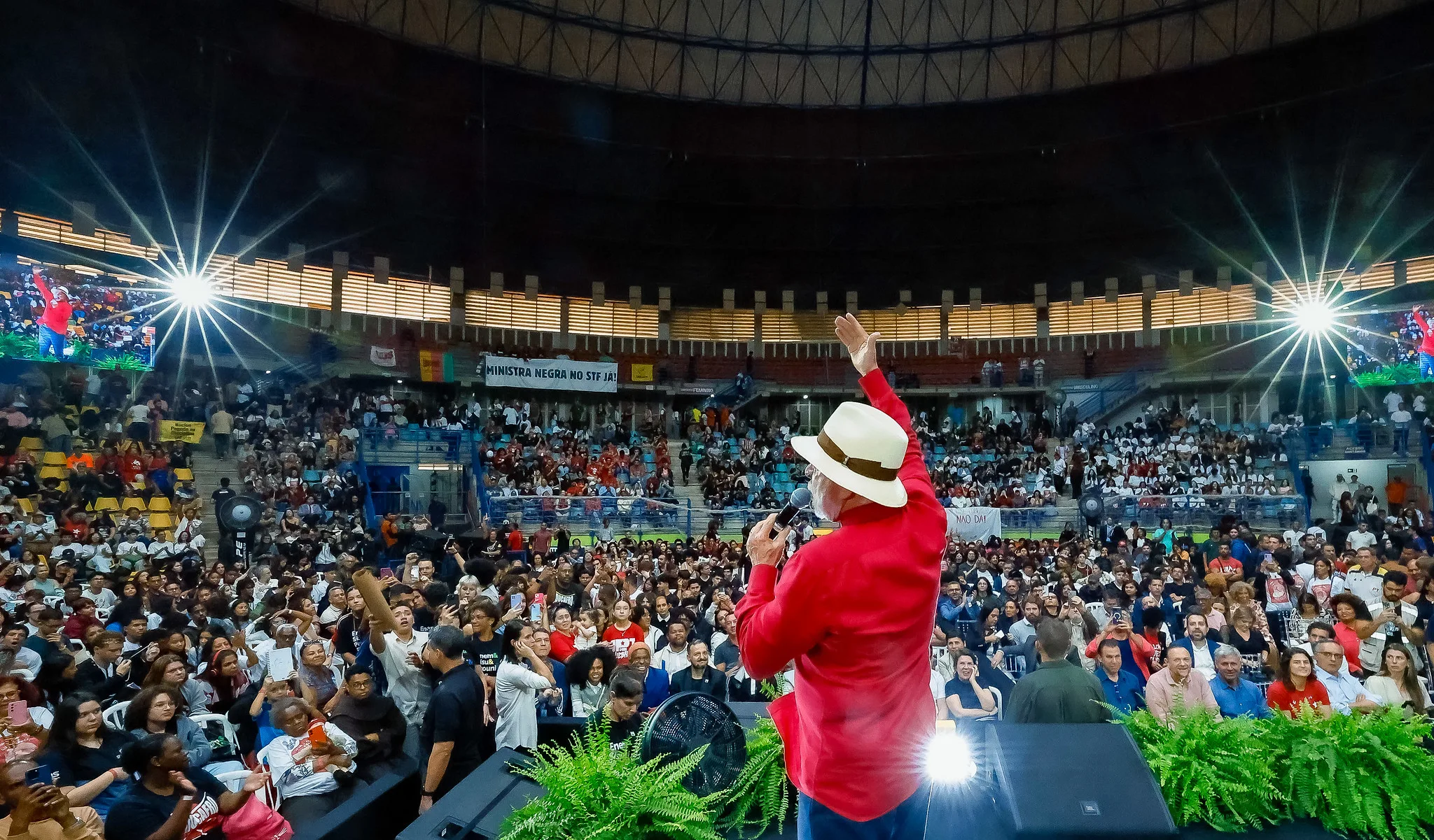 O presidente Luiz Inácio Lula da Silva (PT) participou neste sábado (18) de um encontro com estudantes da rede de cursinhos populares do ABC paulista em São Bernardo do Campo.