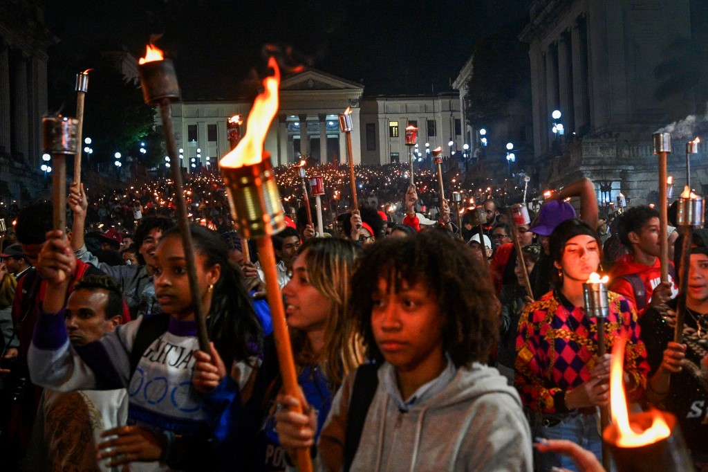 Sob o lema “Unidade e resistência”, milhares de jovens se reuniram na emblemática escadaria da Universidade de Havana, na noite de terça-feira (27), onde ouviram o discurso da dirigente estudantil minutos antes de acender as milhares de tochas que iluminariam a mobilização.