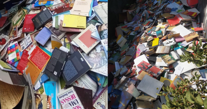 Os representantes ainda pedem laudo pericial de urgência nos livros descartados e resgatados para verificar a existência de contaminação por fungos.