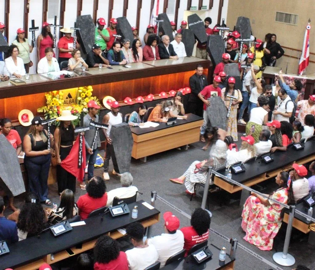 O Movimento de Trabalhadores Rurais sem Terra (MST) realizou um ato político na Assembleia Legislativa da Bahia (Alba), em Salvador, na manhã desta sexta-feira (17), durante sessão especial em memória aos 30 anos do massacre de Eldorado dos Carajás. Ocorrido em 17 de abril de 1996 no Pará, o episódio, que levou ao assassinato de 21 trabalhadores rurais, culminou na criação do Dia Nacional de Luta pela Reforma Agrária.