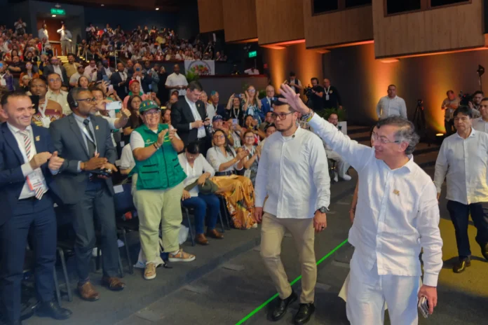 Essa política foi um dos motivos para seu governo hospedar a conferência. Petro também citou os enfrentamentos entre forças armadas e grupos armados, dizendo que “a paz na Colômbia começa se o camponês puder acessar a terra. Assim esgotamos a violência.” “Mais paz na Colômbia significa reforma agrária”, afirmou.
