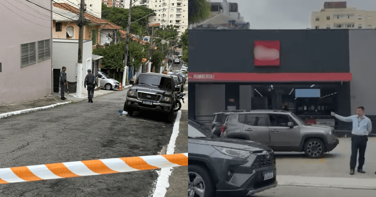 Ó terceiro veículo utilizado na ação foi deixado pelos suspeitos no local. Um deles teria sido atingido pelos disparos.
