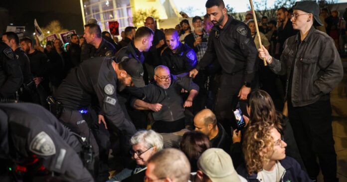 “Conseguimos protestar por cerca de meia hora, e logo a polícia começou a nos retirar à força”, contou Tzur. “Todo mundo com quem eu estava foi empurrado e jogado no chão. Alguém quase desmaiou.”