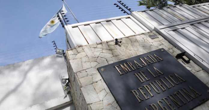 A embaixada argentina na Venezuela, atualmente sob responsabilidade brasileira, abriga refugiados venezuelanos. A representação diplomática foi assumida pelo Brasil em agosto de 2024, após o governo de Caracas expulsar os diplomatas argentinos de Caracas em meio ao agravamento das relações bilaterais.