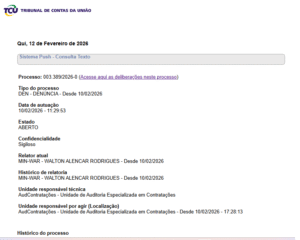 O caso está sob relatoria do ministro Walton Alencar Rodrigues, considerado um dos mais experientes e respeitados integrantes da Corte. Segundo apuração da reportagem, o TCU decretou sigilo no procedimento, em razão da gravidade dos fatos narrados, da quantidade de municípios envolvidos e da necessidade de preservar o andamento das investigações.