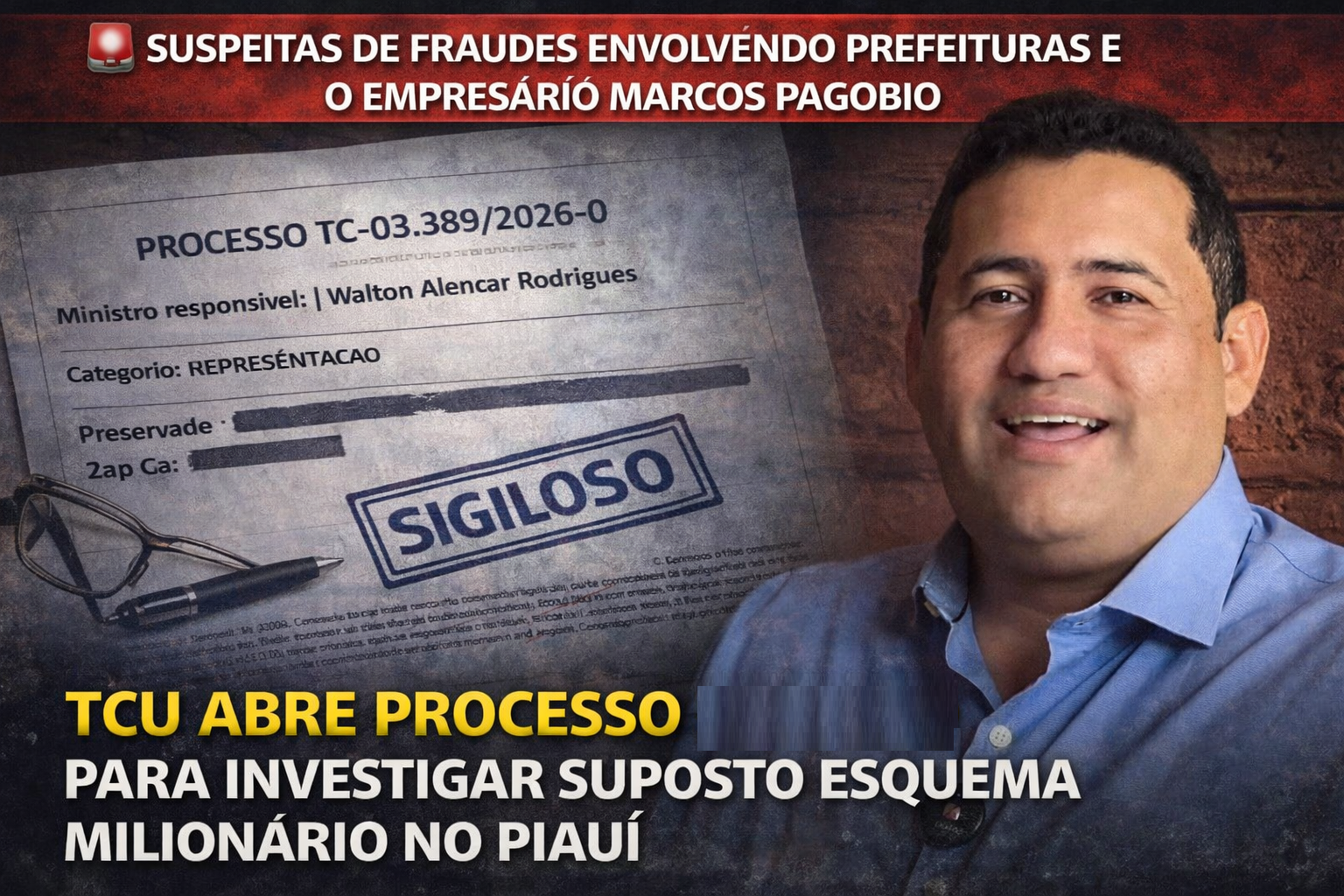 O Tribunal de Contas da União (TCU) abriu o processo nº 03.389/2026-0 para investigar supostas irregularidades em contratos firmados por diversas prefeituras do Piauí com a empresa M R Locações e Serviços, de propriedade do empresário Marcos Renan de Melo Gomes, conhecido como Marcos Pagobio.