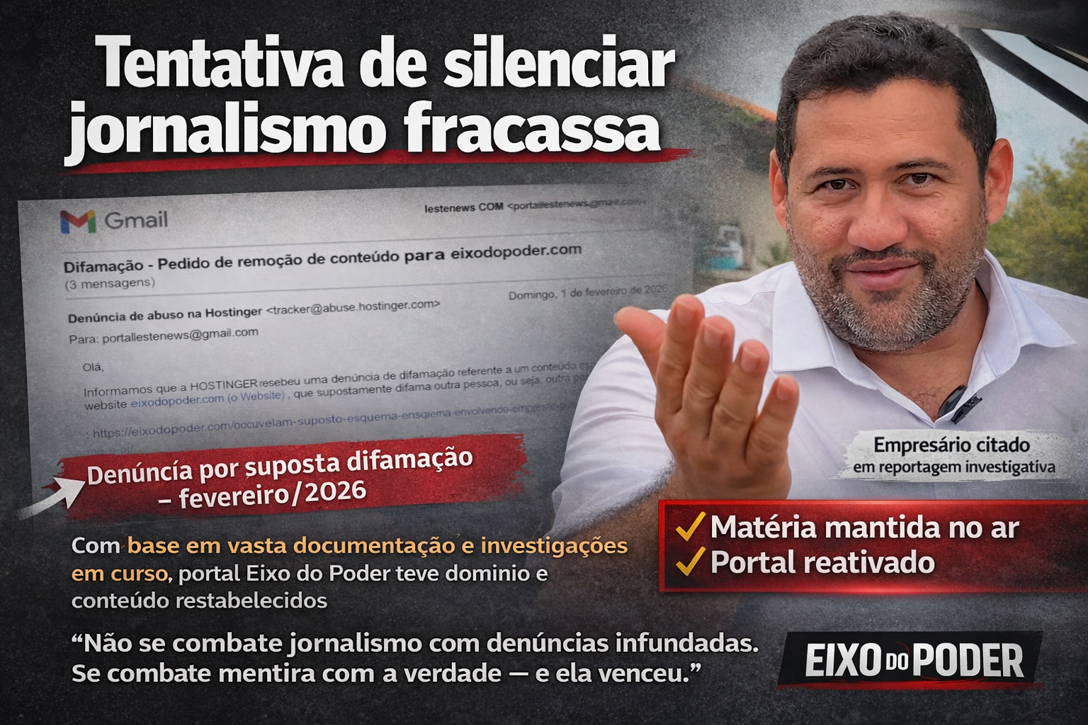 Com isso, a Hostinger determinou o imediato restabelecimento integral do domínio eixodopoder.com e da manutenção da matéria denunciada, independentemente de quem tenha formalizado a reclamação. A decisão reforça que denúncias infundadas não podem ser utilizadas como instrumento de censura, especialmente quando direcionadas contra reportagens investigativas baseadas em fatos, documentos e linguagem responsável.