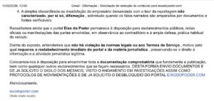 O portal Eixo do Poder teve seu domínio eixodopoder.com reativado pelo Departamento de Abusos da Hostinger após a empresa concluir que a matéria denunciada continha informações verídicas, devidamente embasadas em documentação robusta e relacionadas a investigações em curso.