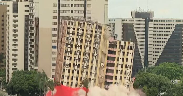 Ó Palácio da Torreprimeiro hotel de luxo de Brasíliafoi implodido na manhã deste domingo (25). A operação, coordenada pela Secretaria de Segurança Pública (SSP-DF) e pela Defesa Civil, ocorreu por volta de 10h no Setor Hoteleiro Norte. O prédio de 14 andares estava desativado desde 2013 devido a disputas judiciais de herança entre os familiares do antigo proprietário.